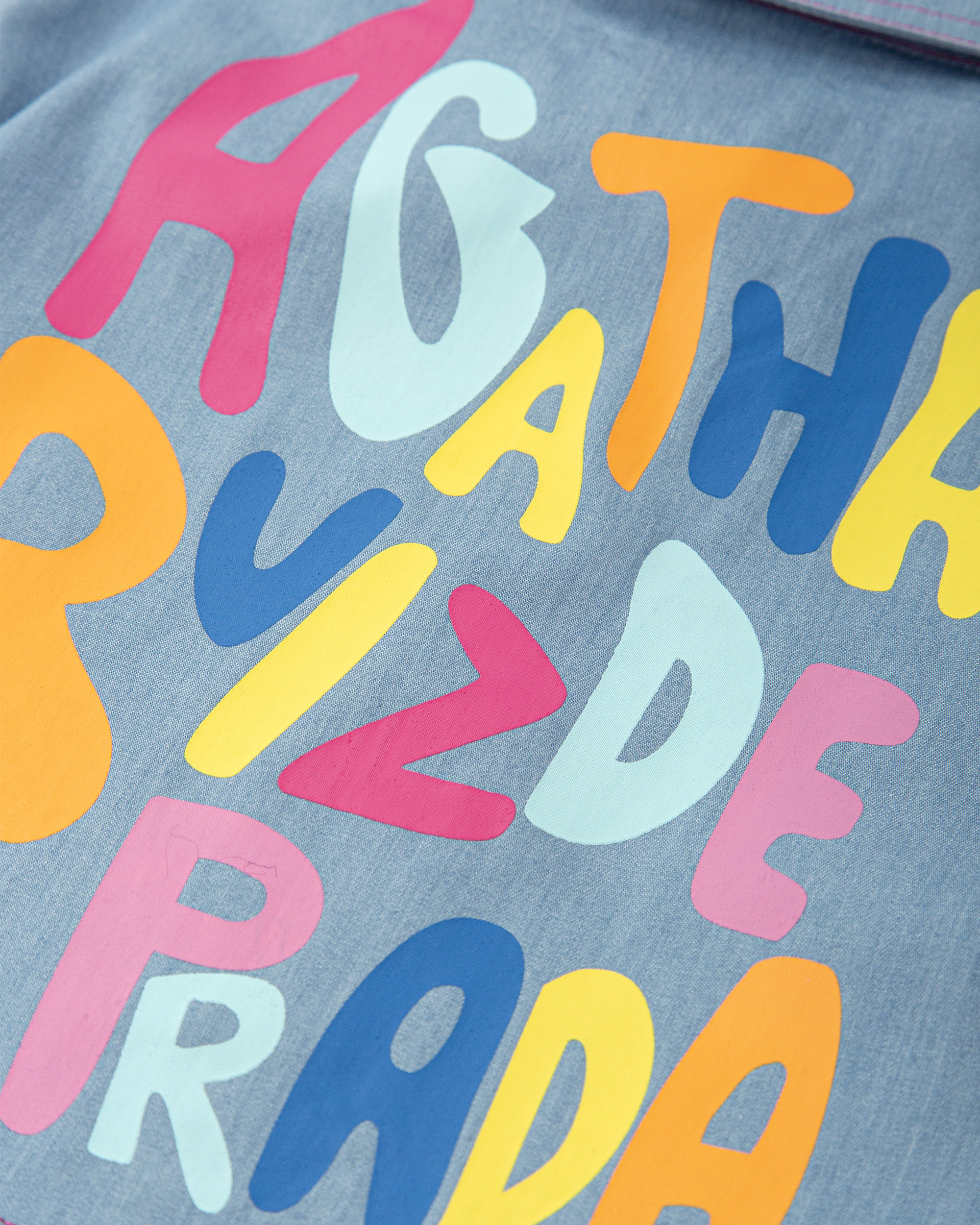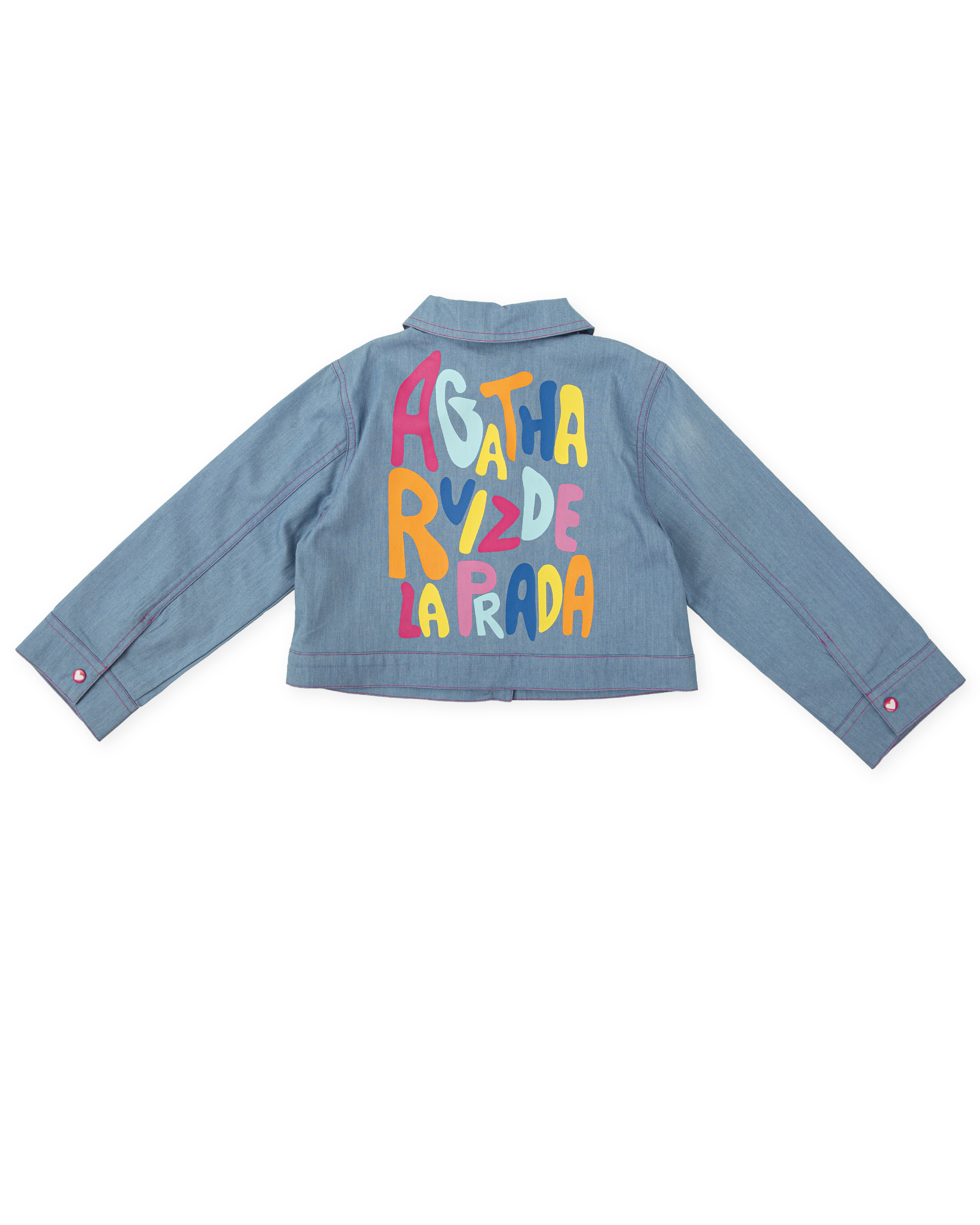 Agatha Ruiz De La Prada Baby Blue Cotton Chambray Jacket with Colourful Logo Print