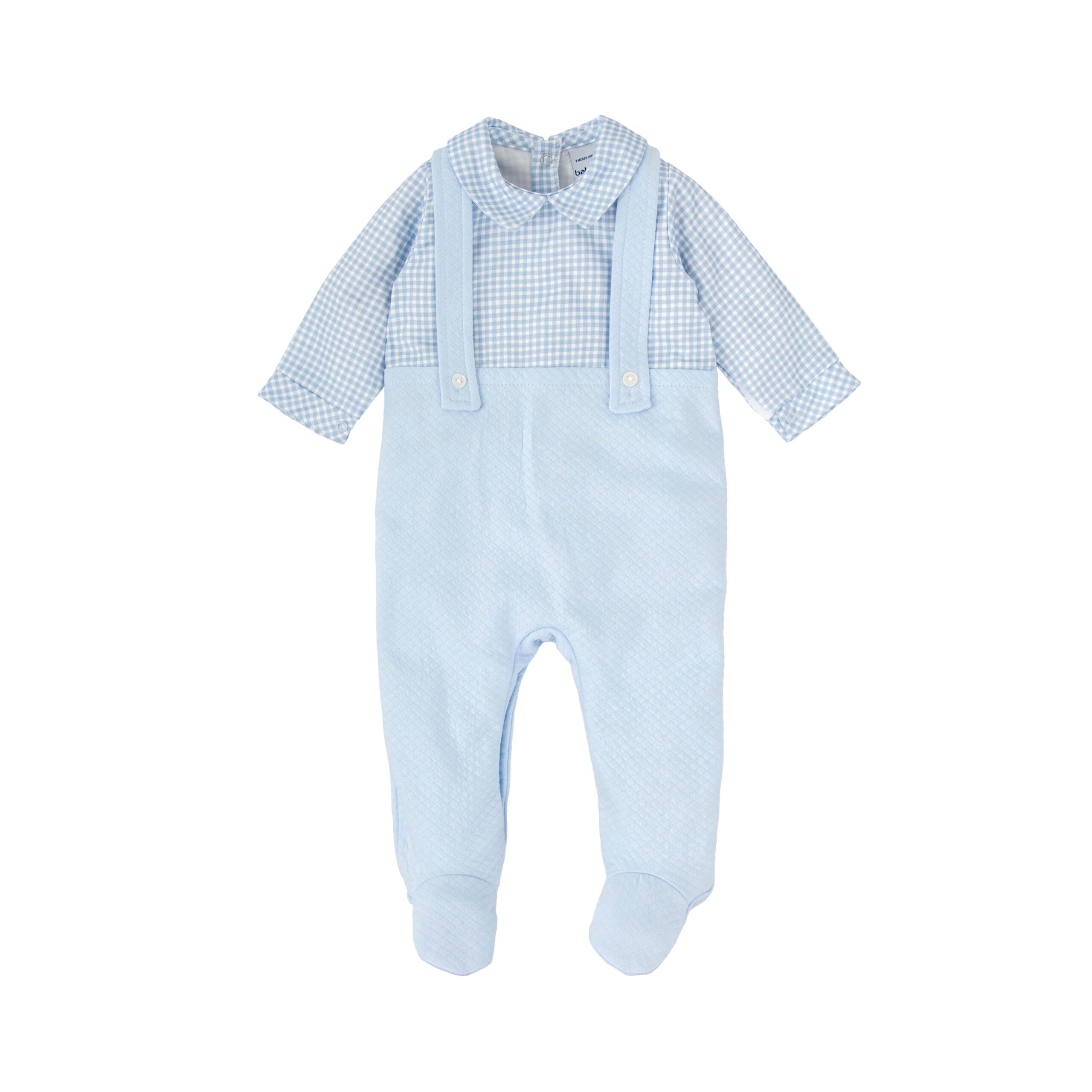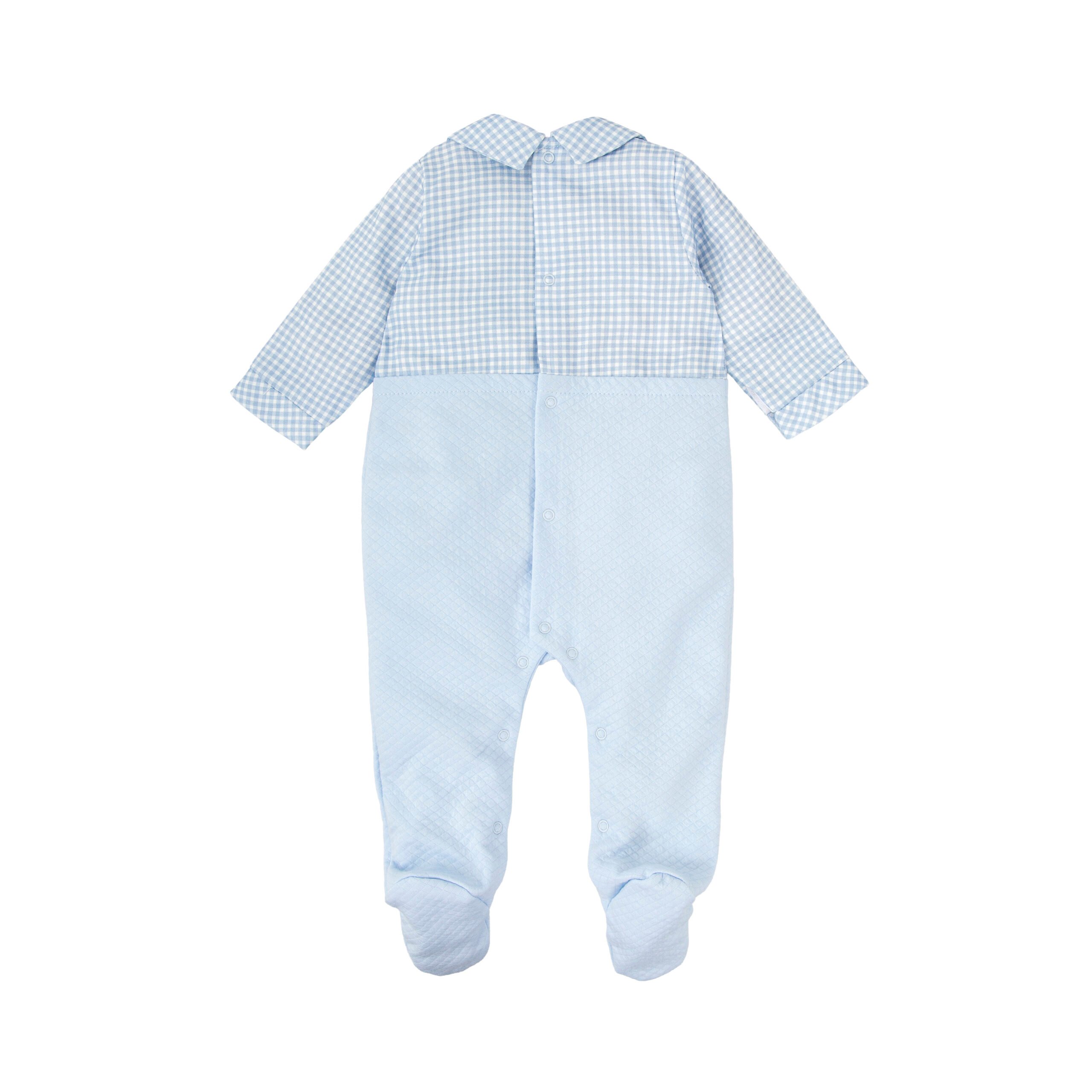 Babidu Blue Cotton Babygrow with Gingham Trim