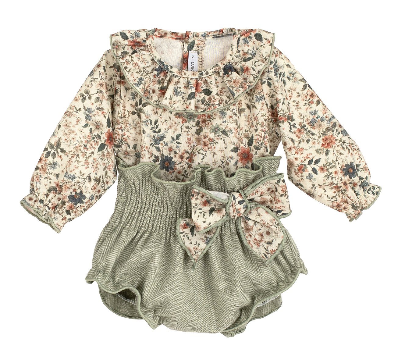 Calamaro Burgundy & Oatmeal Tartan Blouse & Bloomers