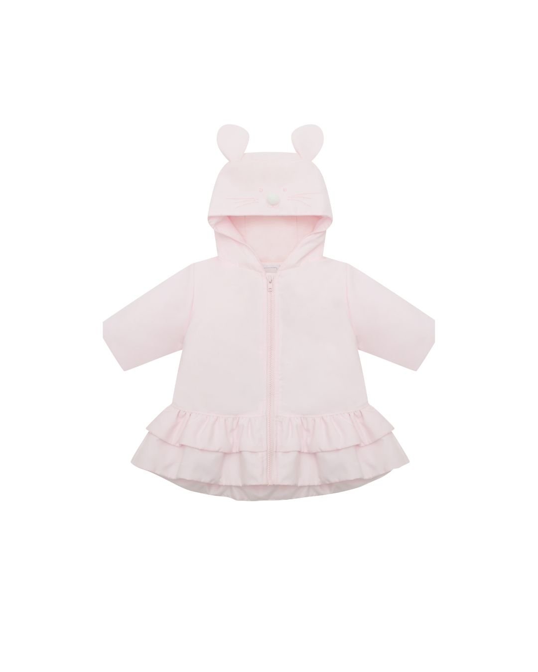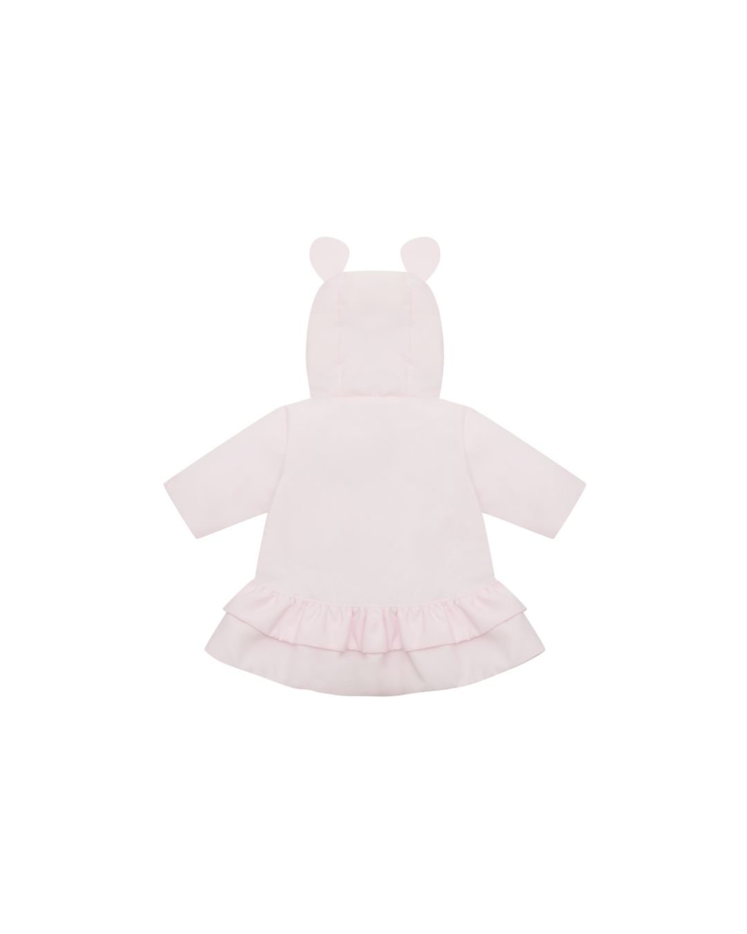 Our new lightweight, casual baby girls hooded jacket will match with any Emile et Rose pink outfit. Made of shower proof microfibre and lined in cotton jersey, there is a full-length zip and two peplum style frills. The hood has an adorable Rose Bunny head silhouette with floppy 3D bunny ears. Super cute and perfect for April showers!