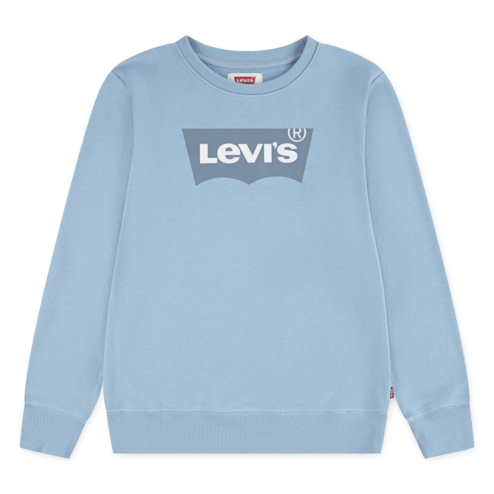 Pale blue long-sleeved sweatshirt for baby boys by Levi’s. It is made in a soft cotton-blend mid-weight jersey, with cosy ribbed trims. The signature Batwing logo is printed on the front in contrasting blue and white, with the iconic Red Tab sewn at the side seam.