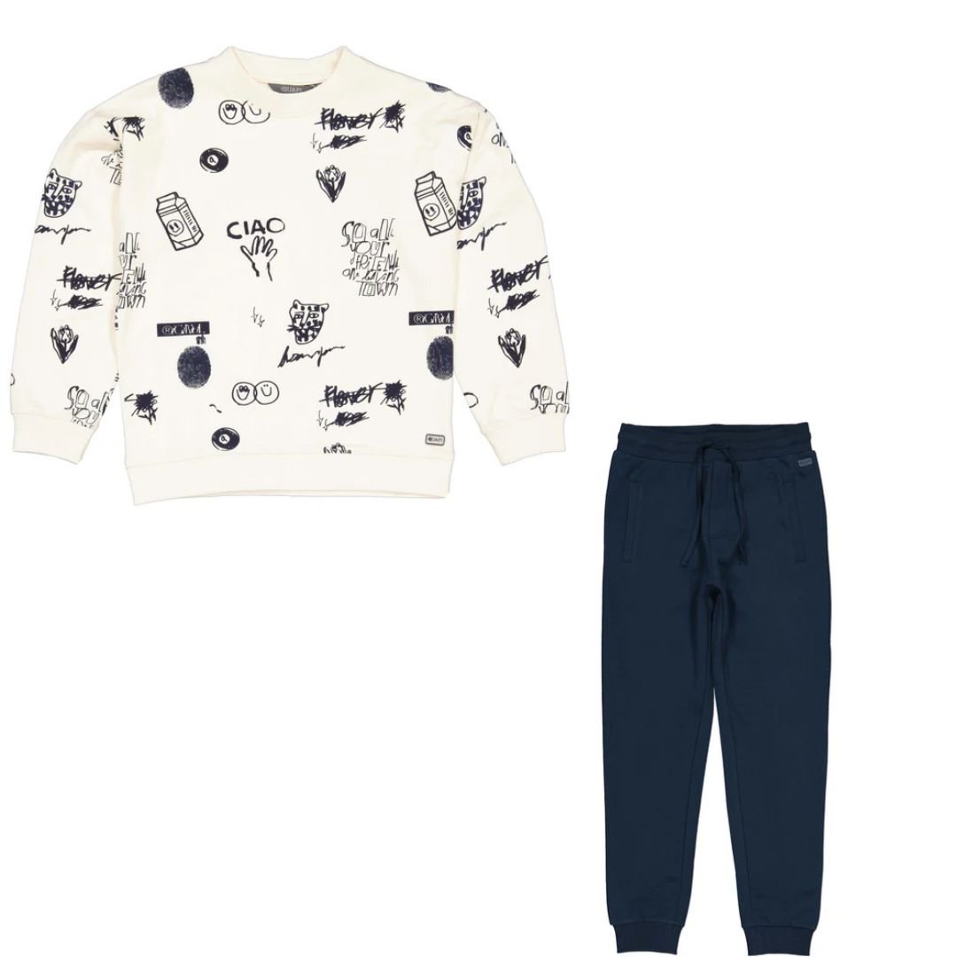 Quapi White Sketch Hoodie Set
